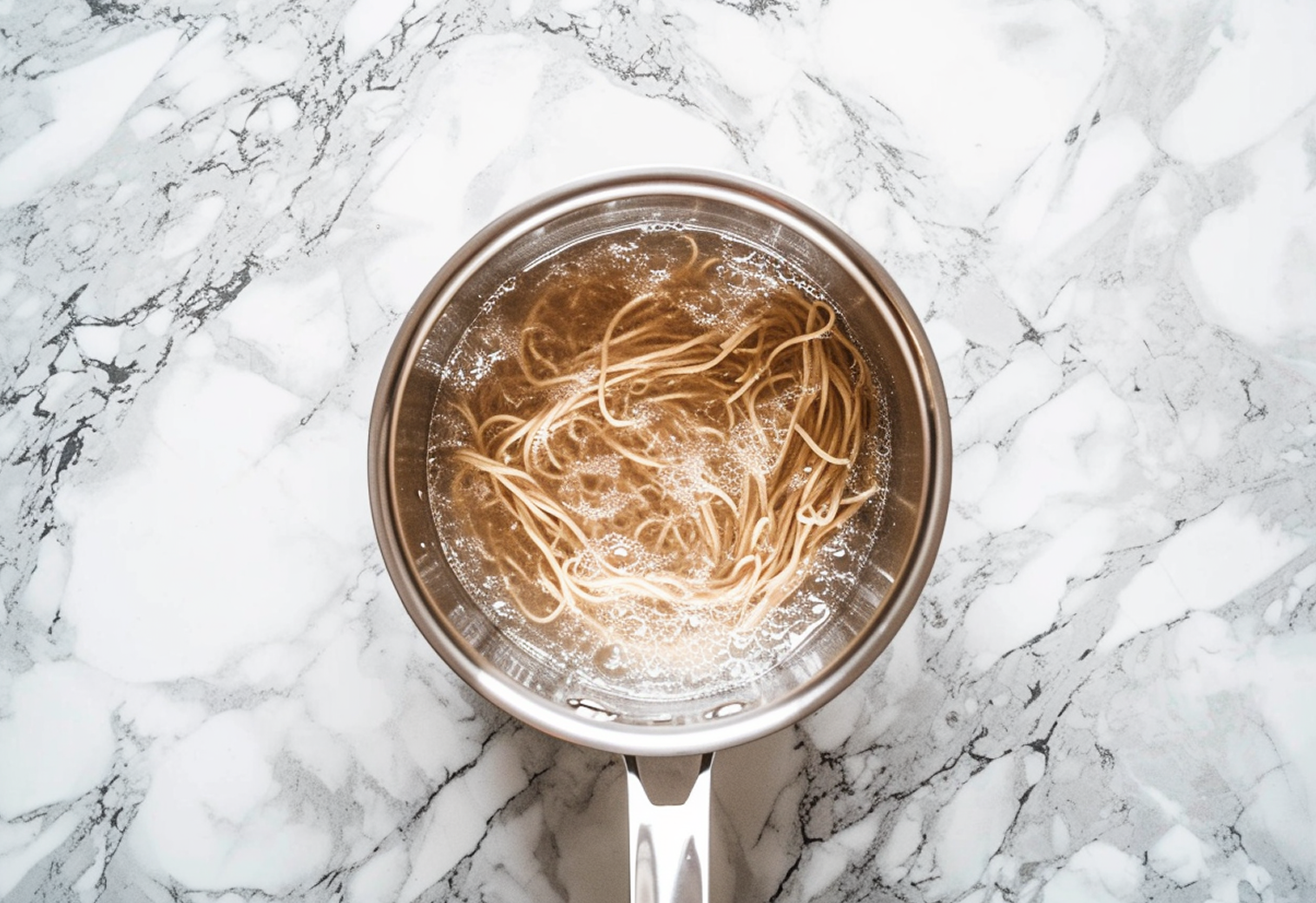 Place your noodles in the saucepan and cook for the instructed time on the packet (4 mins). Once cooked, drain and place to one side. Add a little olive oil to prevent it from sticking if needed.