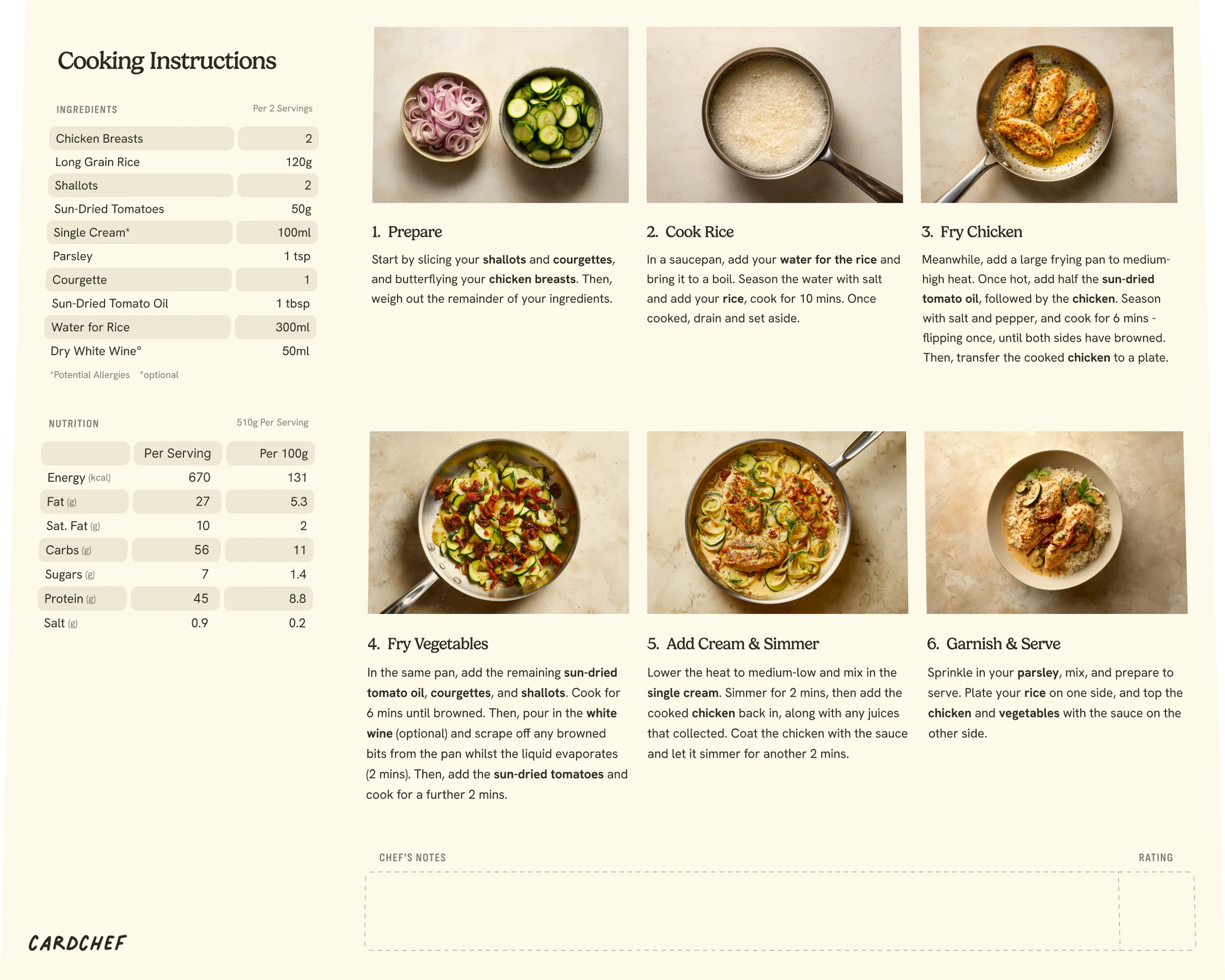 Start by slicing your shallots and courgettes, and butterflying your chicken breasts. Then, weigh out the remainder of your ingredients.