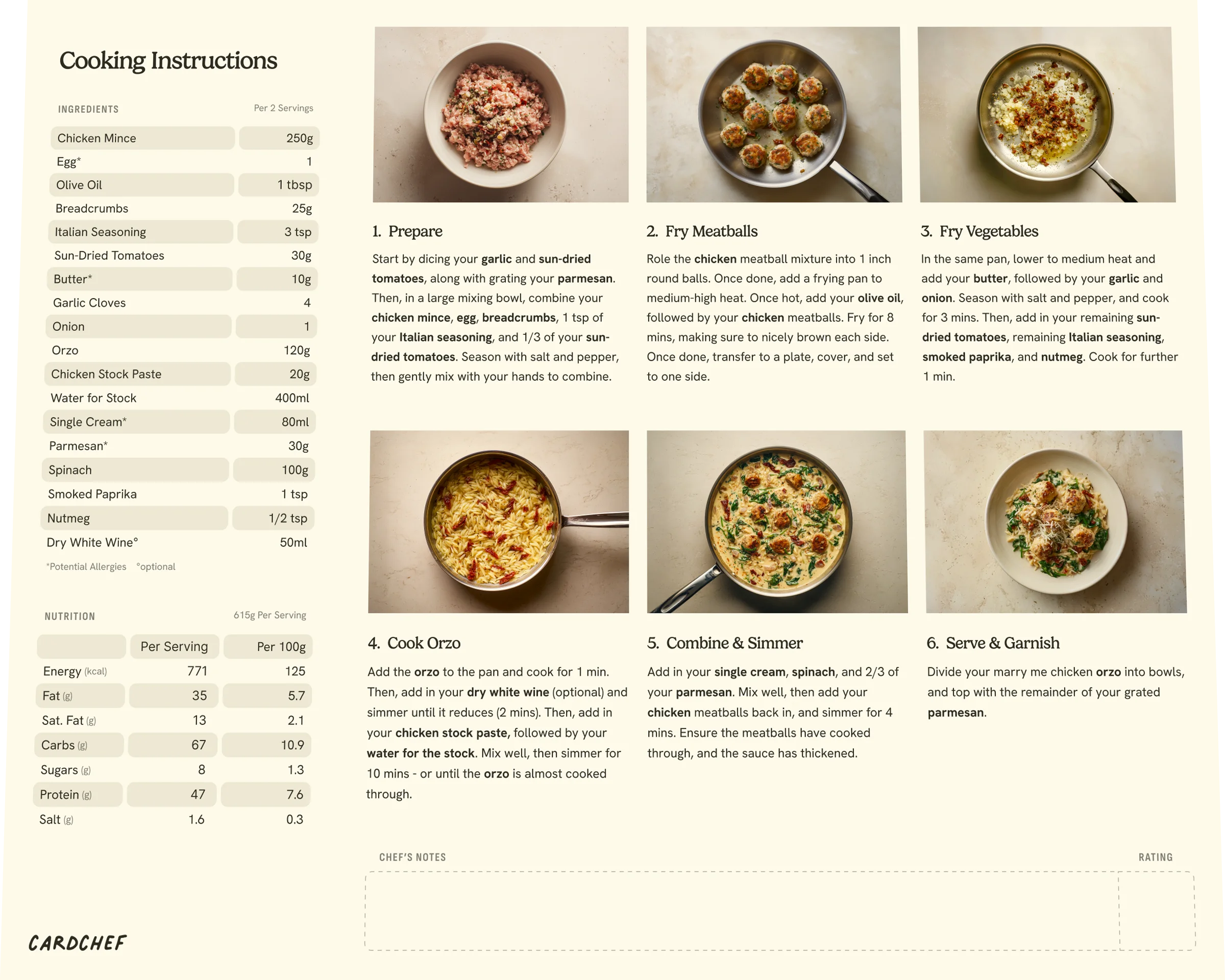 Add in your single cream, spinach, and 2/3 of your parmesan. Mix well, then add your chicken meatballs back in, and simmer for 4 mins. Ensure the meatballs have cooked through, and the sauce has thickened.