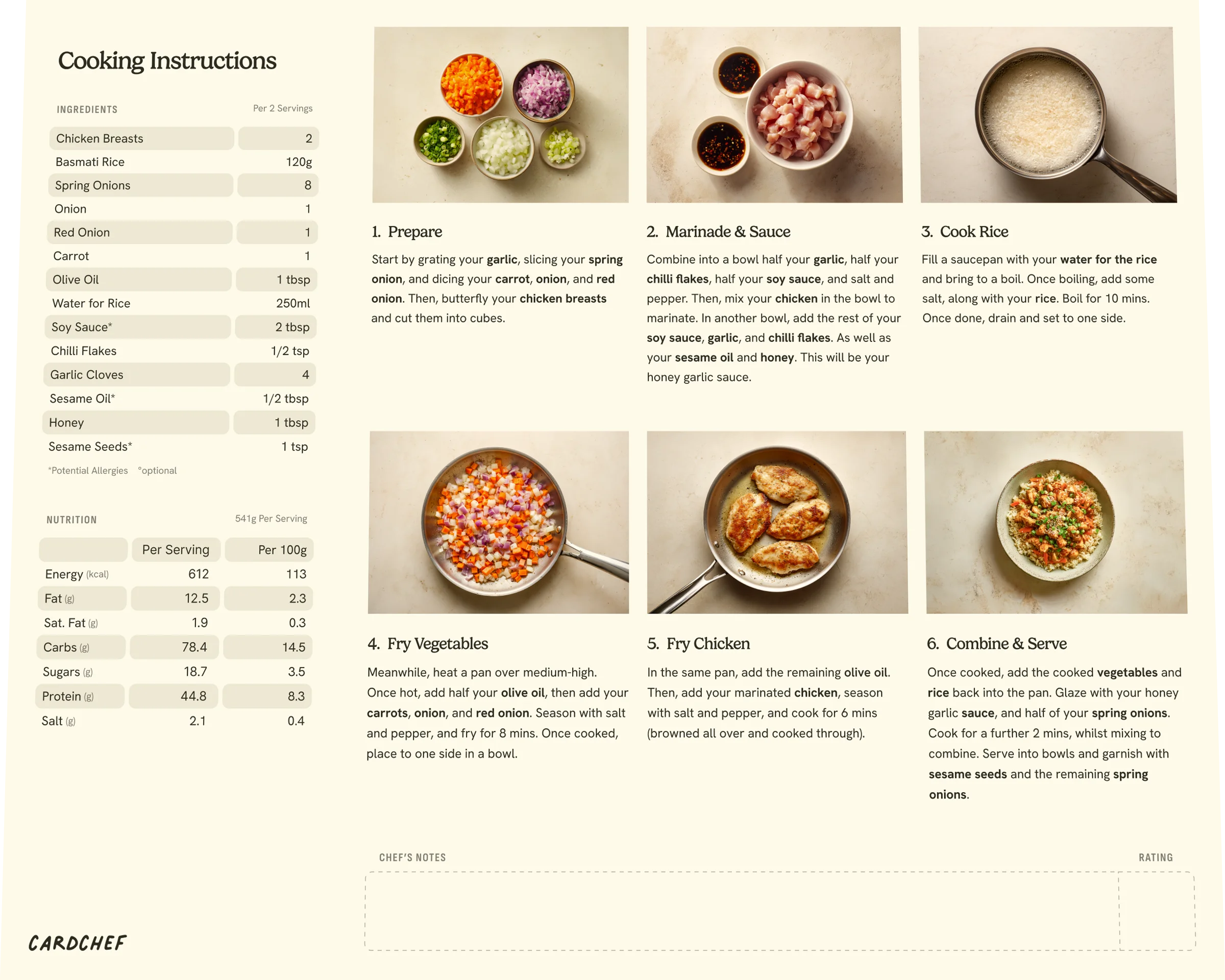 Start by grating your garlic, slicing your spring onion, and dicing your carrot, onion, and red onion. Then, butterfly your chicken breasts and cut them into cubes.